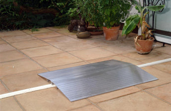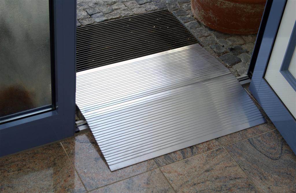 Die zweiteilige Schwellenbrücke Typ SBA ist bei unterschiedlich hohen Türschwellen einsetzbar. Sie ist sehr leicht und handlich. Die Türschwellenbrücke Typ SBA ist keine selbsttragenden Schwellenbrücke, ihr Drehpunkt in der Mitte muss deshalb immer auf der Schwelle aufliegen. Die quer profilierte Fahrfläche sorgt für ein sicheres Befahren der Schwellenbrücke.