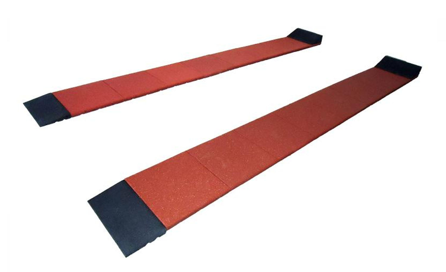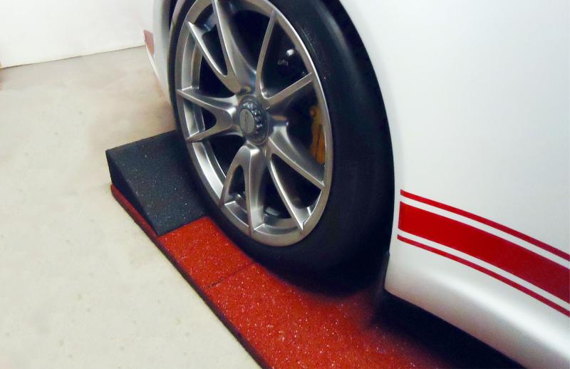 Die Reifenschonerspur besteht aus Gummigranulatrampen, die den Reifen einen weichen, schonenden Untergrund bieten.
